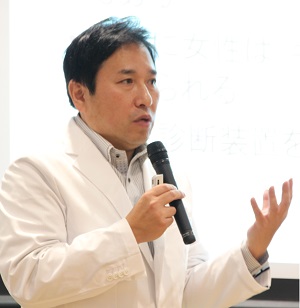 ▽自分の時間を確保しやすいこと▽病院にいなくてもできる仕事があること▽家庭生活を充実させながらも最先端の医療に携われること。そのほか、最新の画像診断装置を扱うことの面白さを語りました。